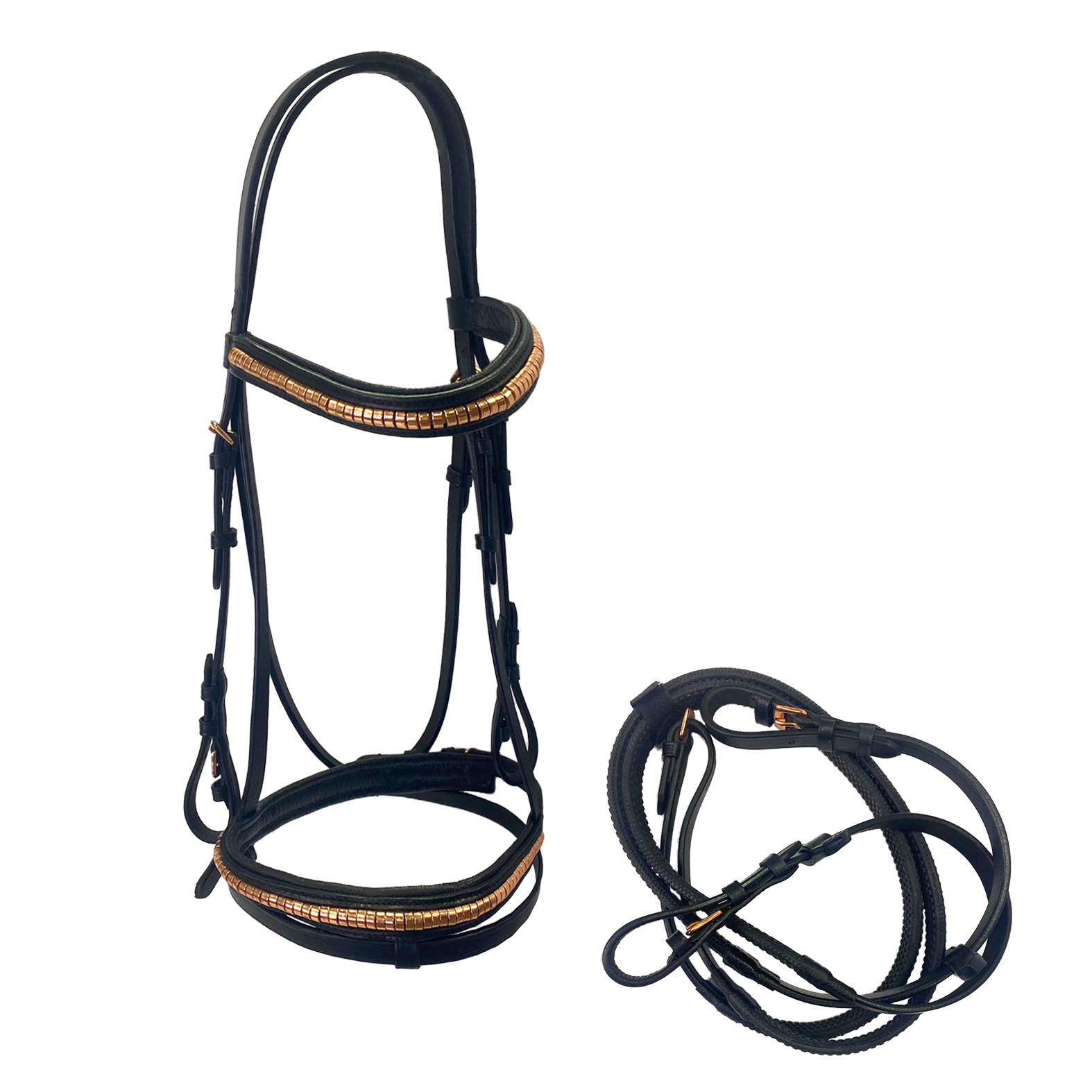 BRIGLIA IN CUOIO CON CLINCHER ORO ROSA E REDINI IN GOMMA INCLUSE - Winner