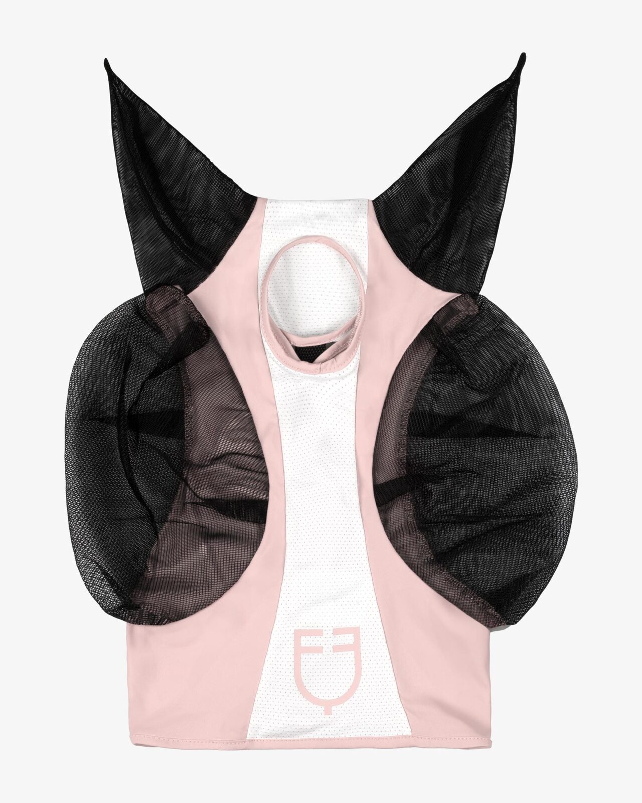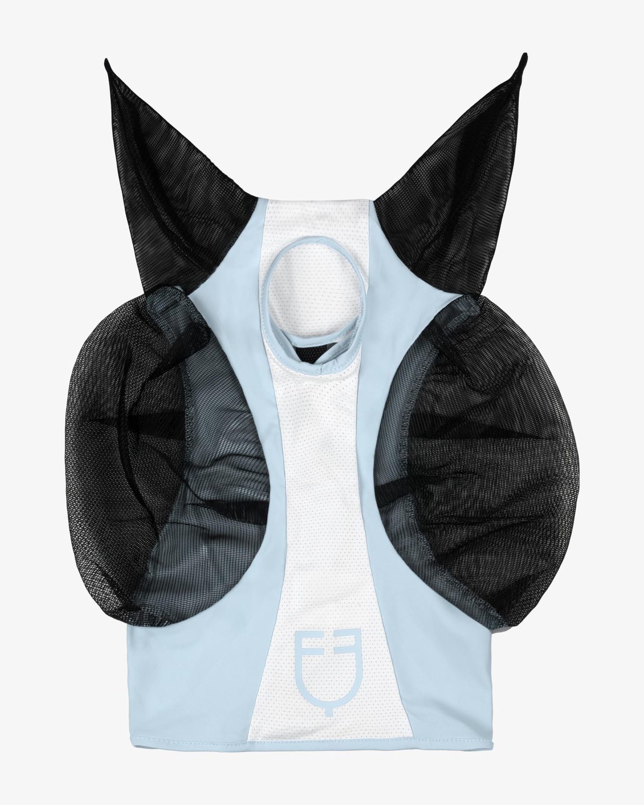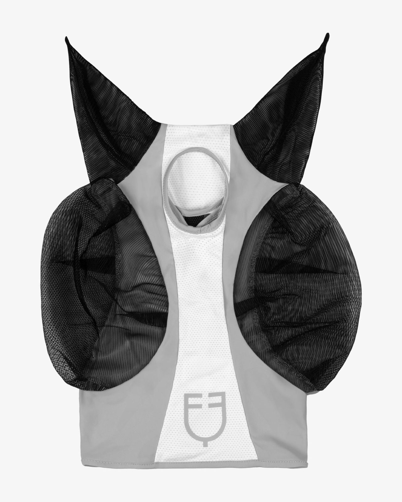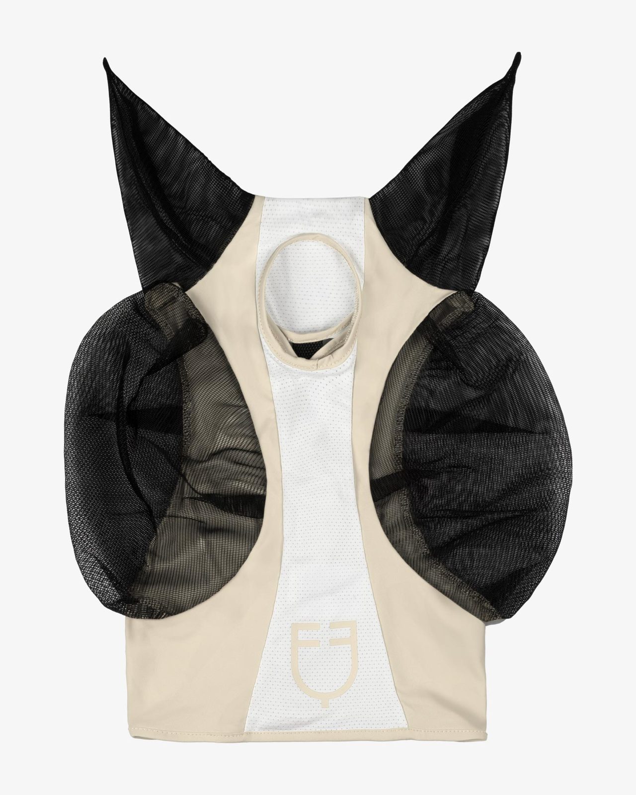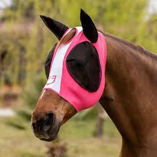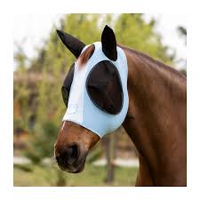 Maschera anti mosche realizzata in lycra e copriorecchie in rete, flessibile e resistente.