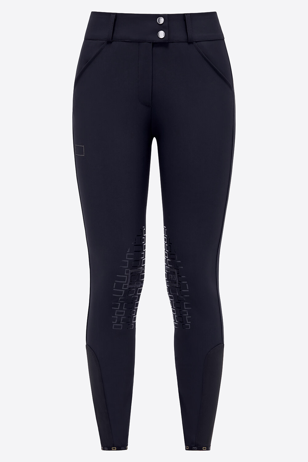 Questi pantaloni da salto sono realizzati in tessuto tecnico bi-stretch e presentano un grip tono su tono all'altezza del ginocchio per garantire la giusta aderenza alla sella. La speciale caratteristica di questo modello è il grip nascosto all'interno della cintura, perfetto per aderire meglio alla tua camicia. Presenta una chiusura con zip sul davanti rinforzata da doppio bottone e ampi passanti per essere indossato comodamente con la cintura.Il calzino nella parte finale del pantalone avvolge il polpaccio sotto lo stivale ed ha un'azione traspirante.La rifinitura con logo RG stampato a contrasto conferisce al capo un look moderno.Disponibile in vari colori.