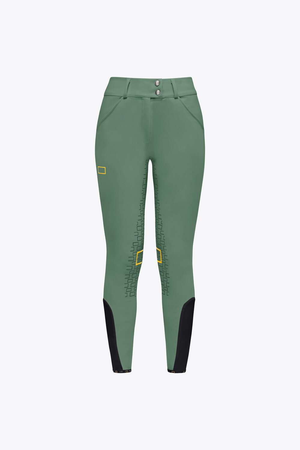 Questi pantaloni da salto sono realizzati in tessuto tecnico bi-stretch e presentano un grip tono su tono full per garantire la giusta aderenza alla sella. La speciale caratteristica di questo modello è il grip nascosto all'interno della cintura, perfetto per aderire meglio alla tua camicia. Presenta una chiusura con zip sul davanti rinforzata da doppio bottone e ampi passanti per essere indossato comodamente con la cintura.Il calzino nella parte finale del pantalone avvolge il polpaccio sotto lo stivale ed ha un'azione traspirante.La rifinitura con logo RG stampato a contrasto conferisce al capo un look moderno.Disponibile in vari colori.