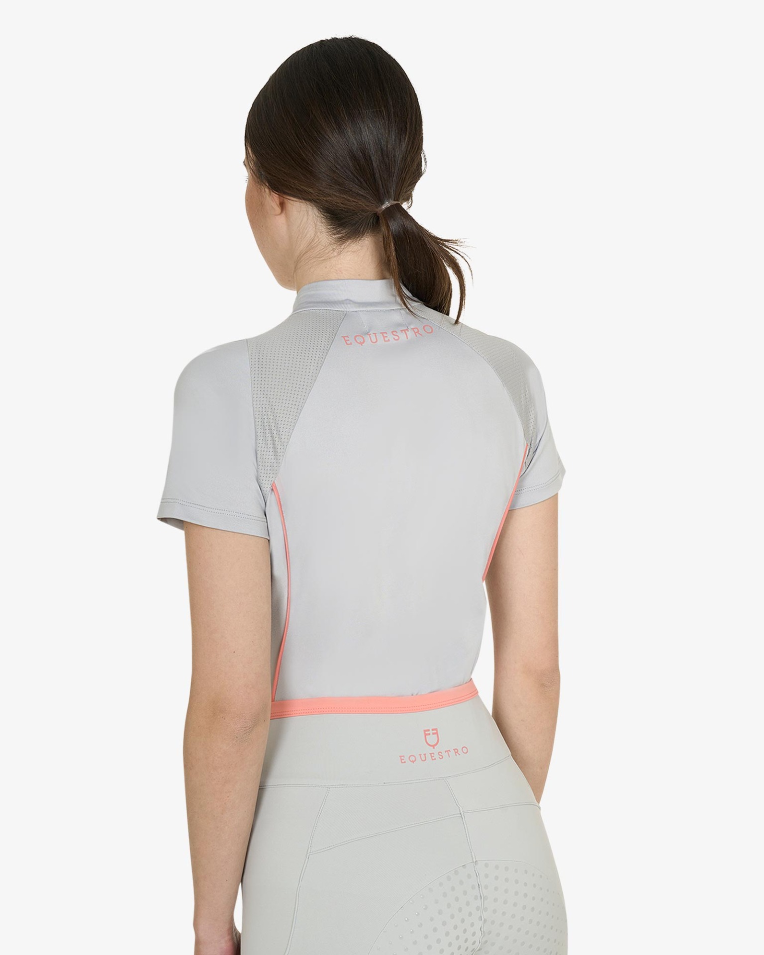 • Grafica con logo Equestro stampata sul lato destro del colletto e scritta Equestro laterale.