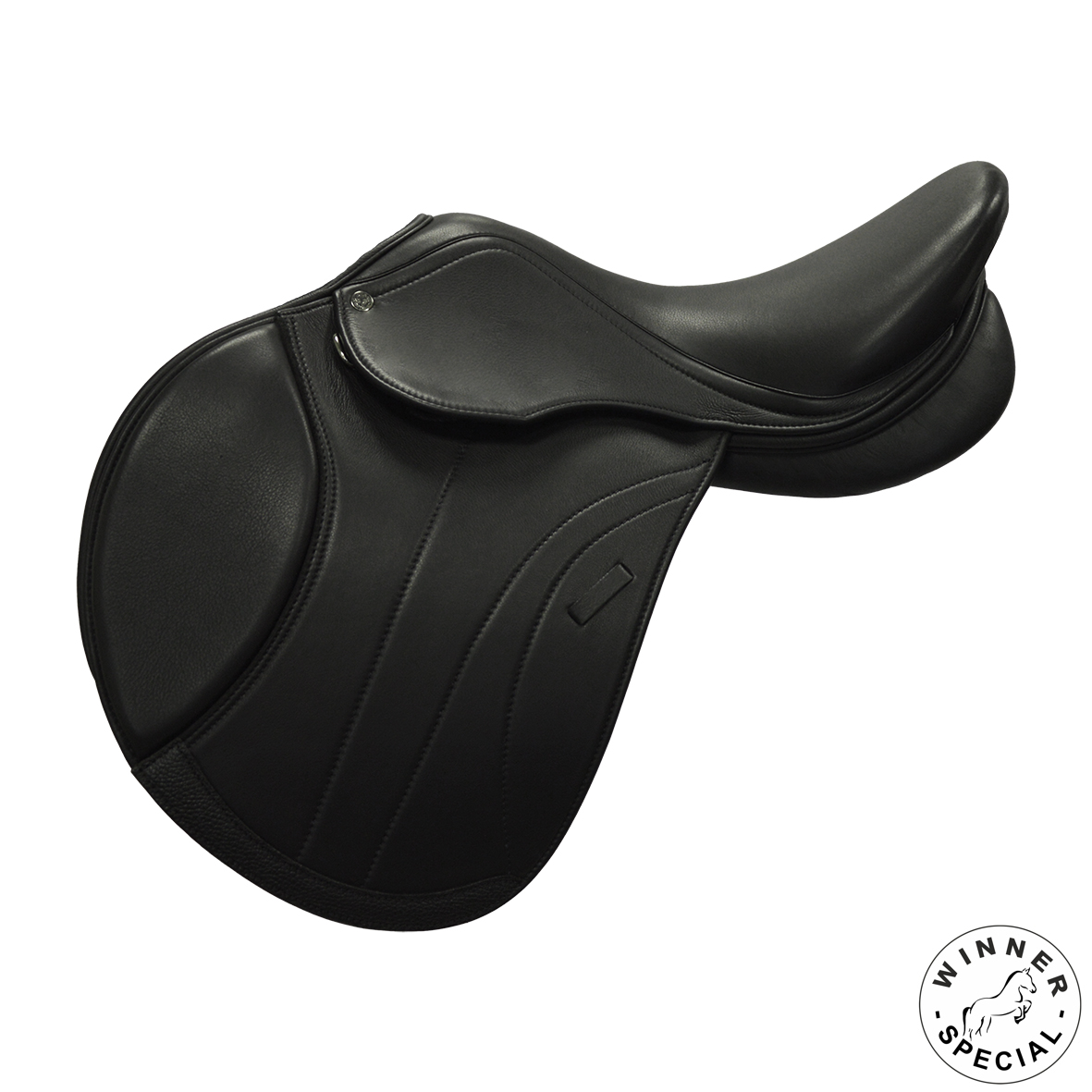Sella da salto Winner SPECIAL modello GAVIA doppiata in cuoio, con appoggi regolabili con velcro, arcione intercambiabile e coprisella.