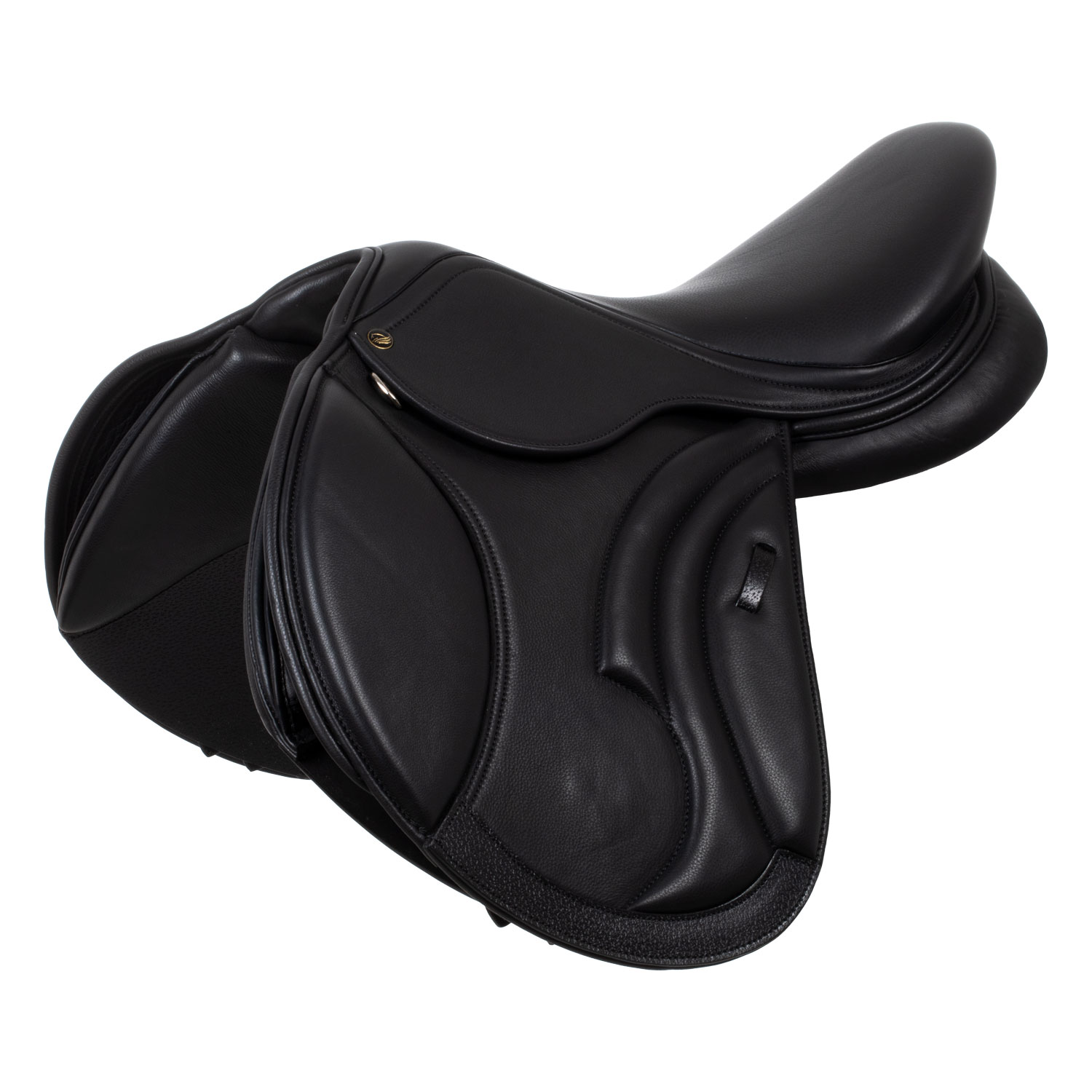 Sella da salto realizzata in morbido cuoio doppiato di alta qualità, progettata per offrire il miglior close contact senza bloccare i movimenti del cavallo. La sella è dotata di cuscini in latex che sono in grado di adattarsi facilmente alla conformazione della schiena del cavallo così da modellarsi ad ogni movimento, adattandosi quindi alle esigenze del cavallo e del cavaliere.