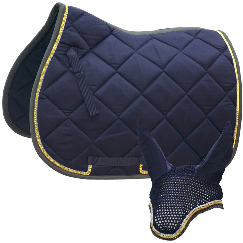 Sottosella con cuffia abbinata, doppia imbottitura e due cordoni, trapuntatura a rombo.