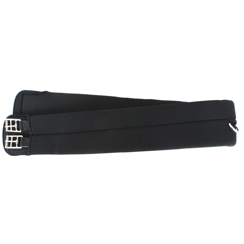 Sottopancia antifiaccatura SARTORE in neoprene nero rivestito, fibbie e anello centrale inox, elastici terminali.