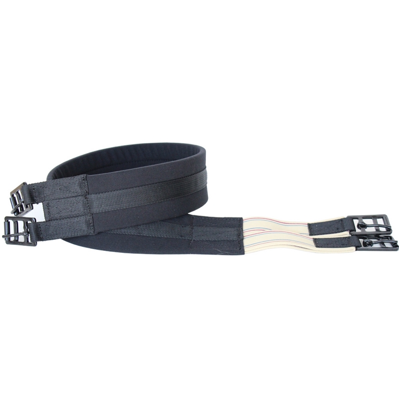 Sottopancia imbottito in tela di cotone, con elastici e fibbie in metallo con rullo.
