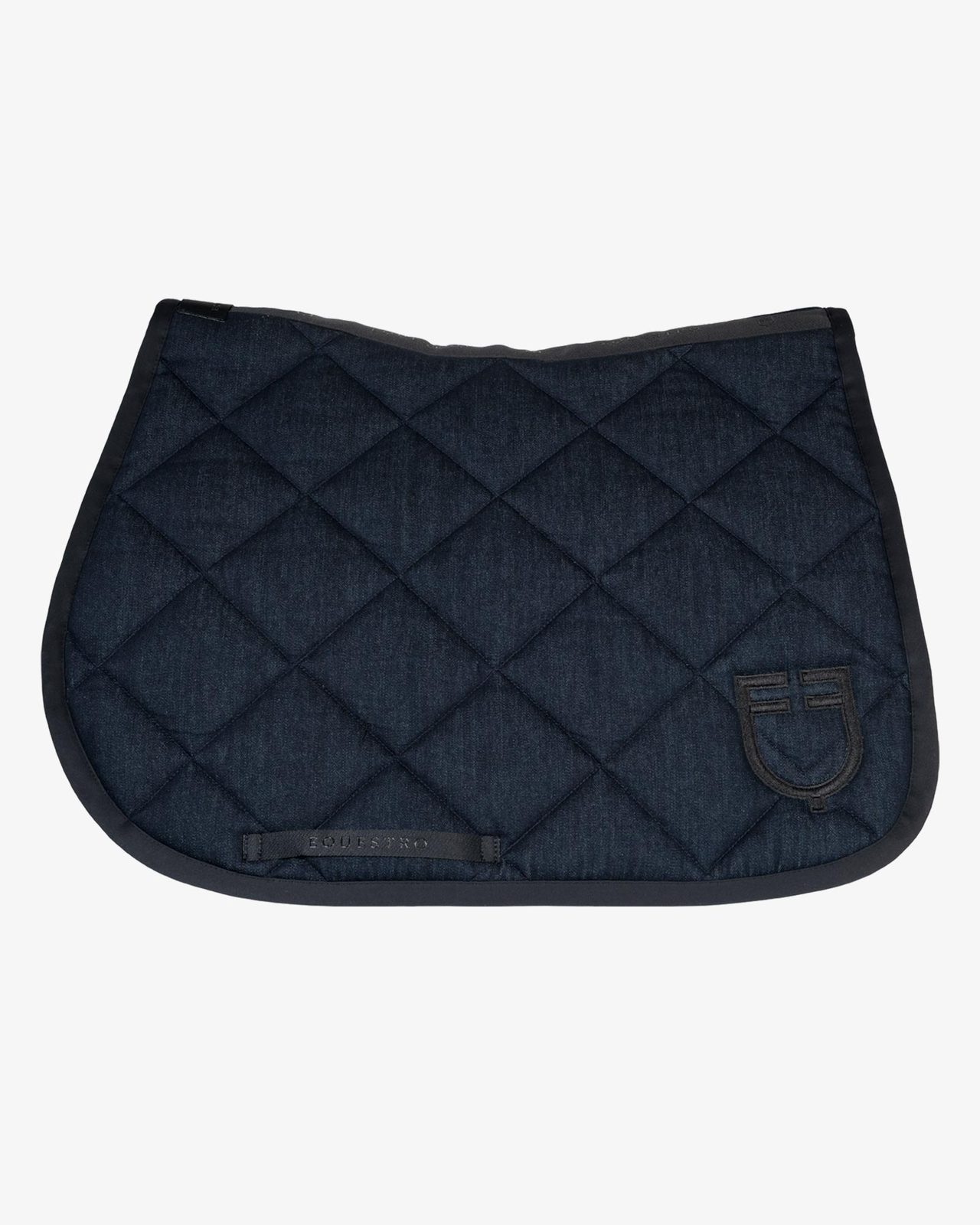Sottosella da salto in tessuto tecnico effetto denim con trapuntatura a rombi. Ideale per ogni tipo di stagione dal design semplice e raffinato.