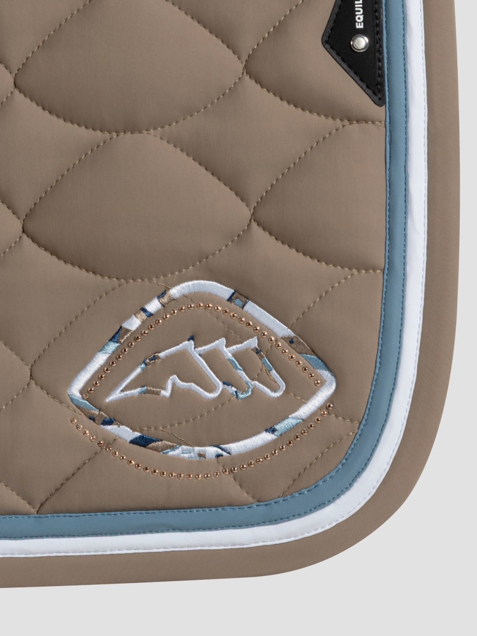 Il sottosella Tech Equiline unisce tecnologia avanzata, stile e comfort. Dotato di imbottitura antibatterica da 450g e assorbimento degli urti ACS2, offre una protezione e una traspirabilità superiori. La fodera in rete nera garantisce un flusso d'aria ottimale, mentre il ricamo a contrasto e il nastro bicolore aggiungono un tocco di eleganza. Completato con strass tono su tono, questo sottosella offre sia prestazioni che sofisticatezza per il cavaliere moderno.