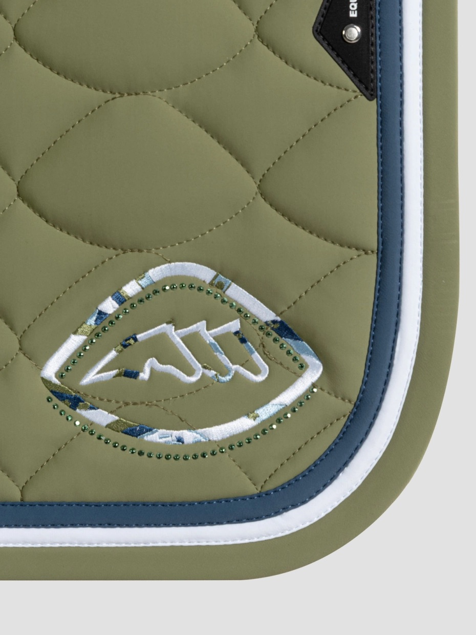 Il sottosella Tech Equiline unisce tecnologia avanzata, stile e comfort. Dotato di imbottitura antibatterica da 450g e assorbimento degli urti ACS2, offre una protezione e una traspirabilità superiori. La fodera in rete nera garantisce un flusso d'aria ottimale, mentre il ricamo a contrasto e il nastro bicolore aggiungono un tocco di eleganza. Completato con strass tono su tono, questo sottosella offre sia prestazioni che sofisticatezza per il cavaliere moderno.