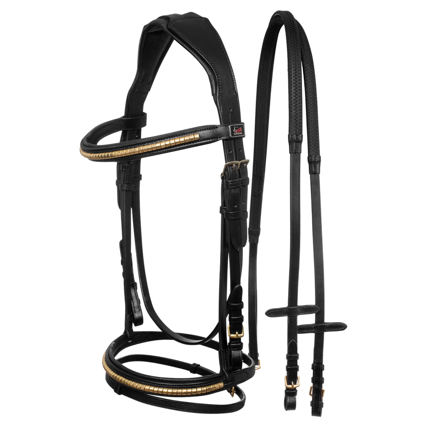 Testiera inglese realizzata in morbido cuoio di alta qualità e fibbie in acciaio inox per renderla più resistente e sicura.